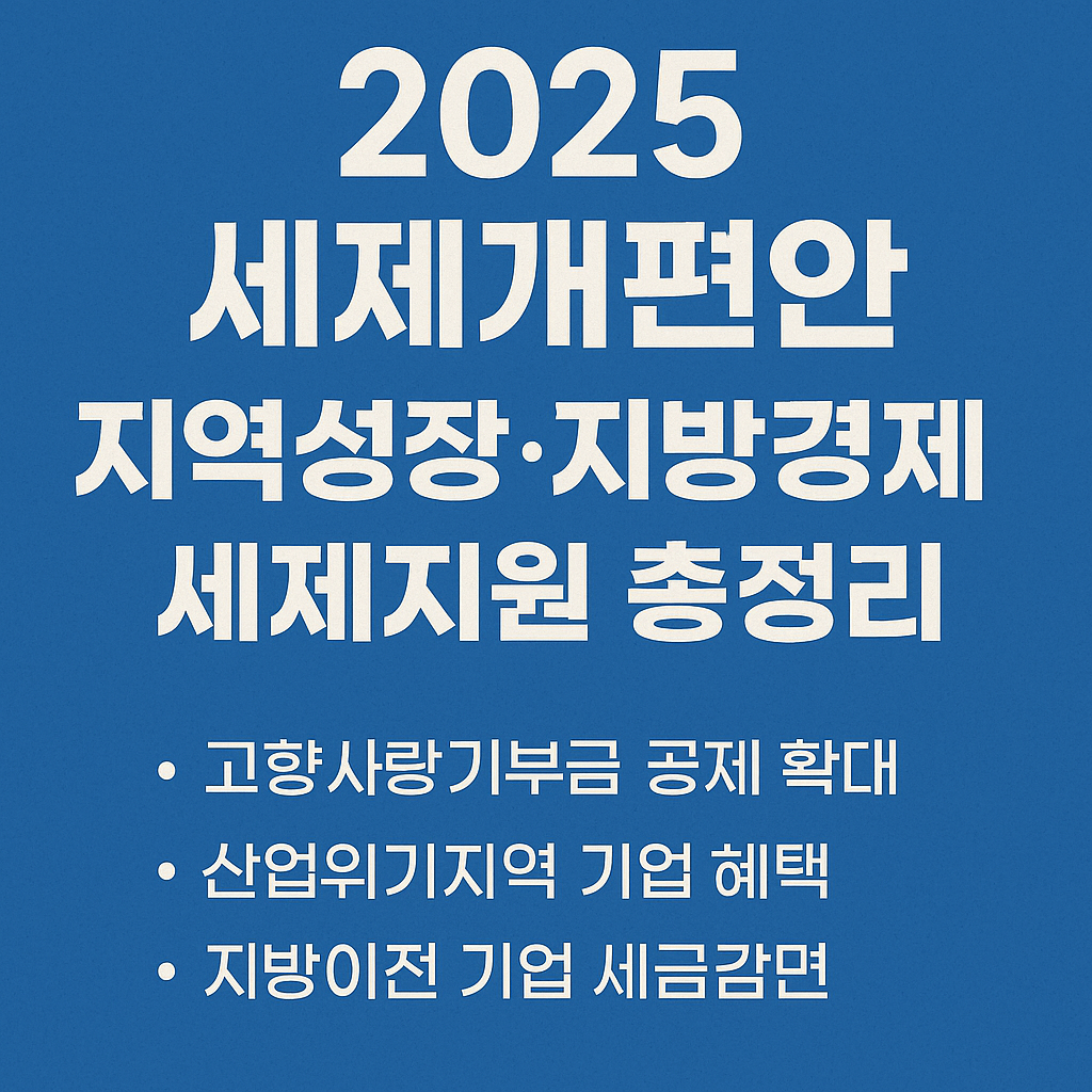 2025년 세제개편안은 고향사랑기부금 세액공제 확대, 산업위기지역 기업 지원, 지방이전 기업 세제개선 등 지역 성장과 지방경제 활성화를 위한 다양한 세제 혜택을 담고 있습니다.
